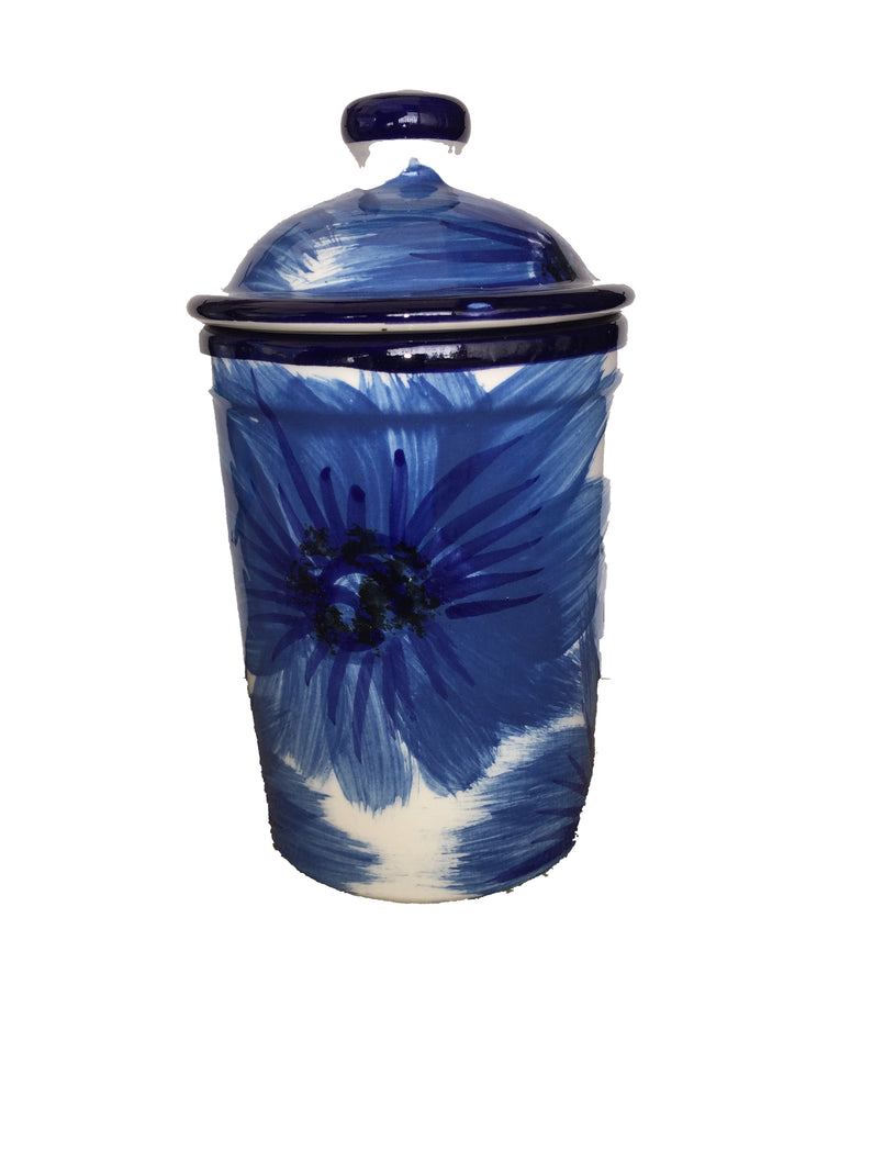 Blue Poinsettia Design Garlic Keeper Pot (14)