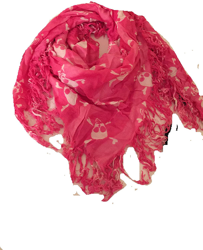 Pamper Yourself Now Pink with White Skull and Cross Bone Design Square Scarf