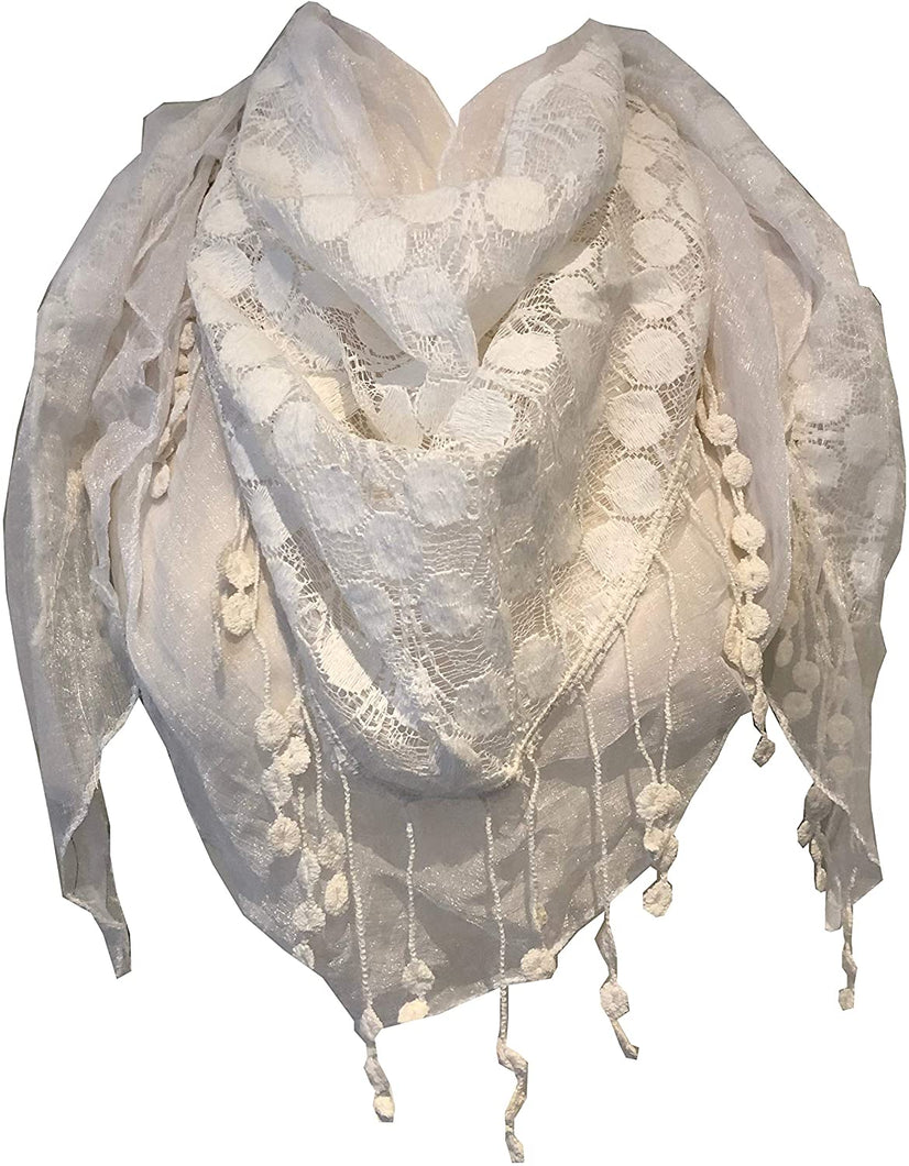 Pamper Yourself Now White Circle lace with Chiffon Edge Design Triangle Scarf