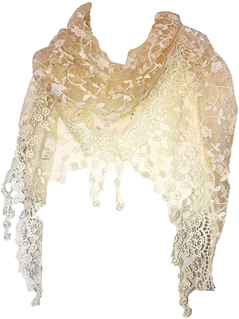 Pamper Yourself Now Beige Small Flower lace Triangle Scarf. a Lovely Fashion Item. Fantastic Gift