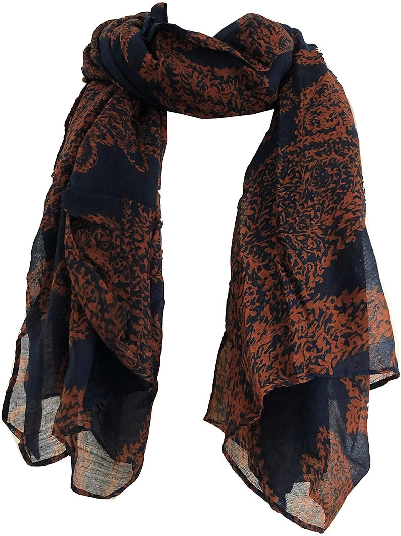 Pamper Yourself Now Blue with Orange Paisley Pattern Long Scarf, Soft Ladies Fashion London