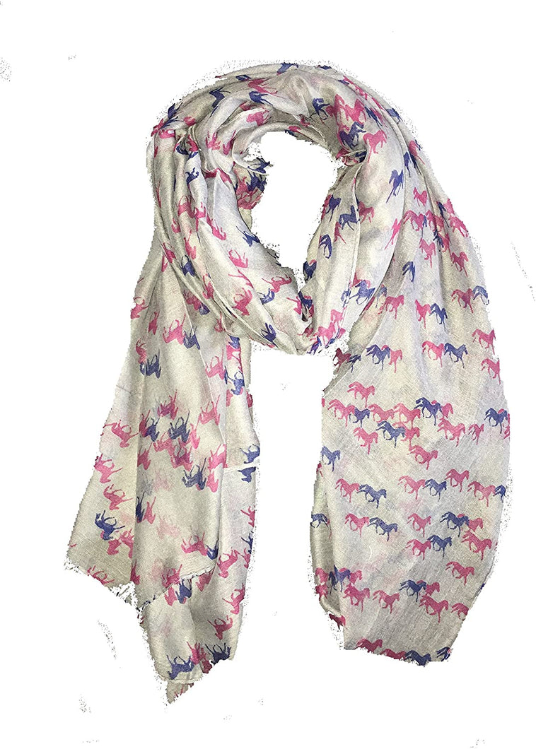 Pamper Yourself Now Grey with Blue and Mauve Small Horse Long Soft Scarf