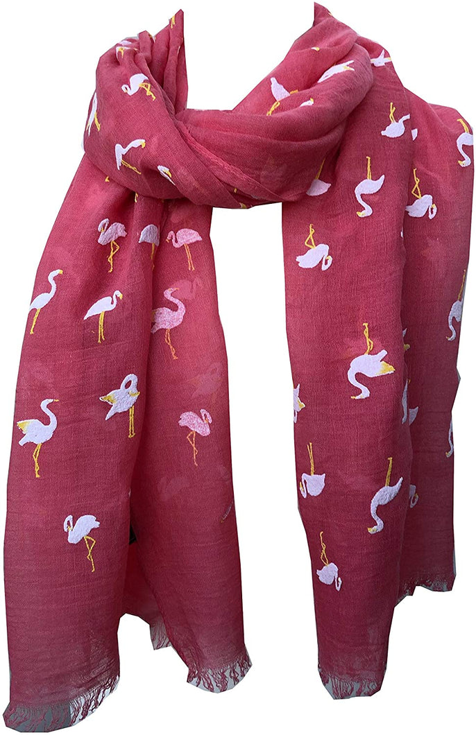 Pamper Yourself Now Coral with White Standing up Flamingo Long Scarf/wrap with Frayed Edge