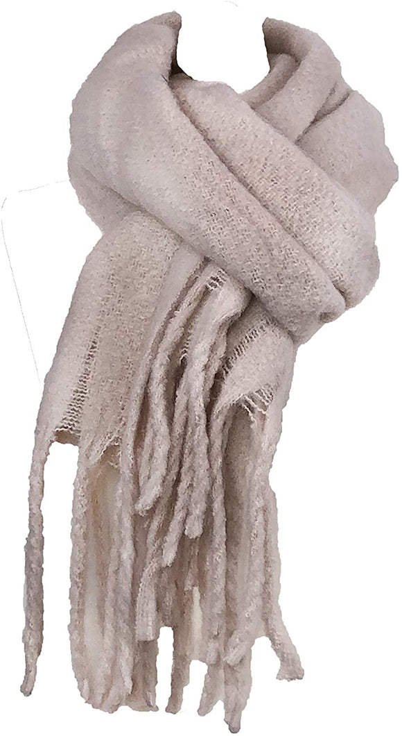 Plain cream chunky super soft scarf with chunky tassels