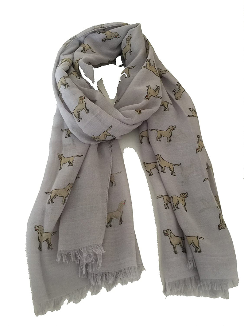 Pamper Yourself Now Grey Labrador Design 2 Long Scarf with Frayed Edge