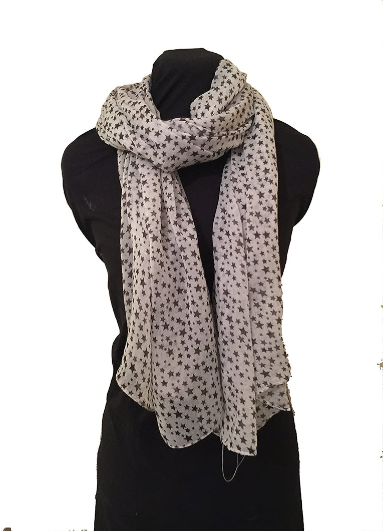 Pamper Yourself Now White with Black Small Star Design Long Scarf