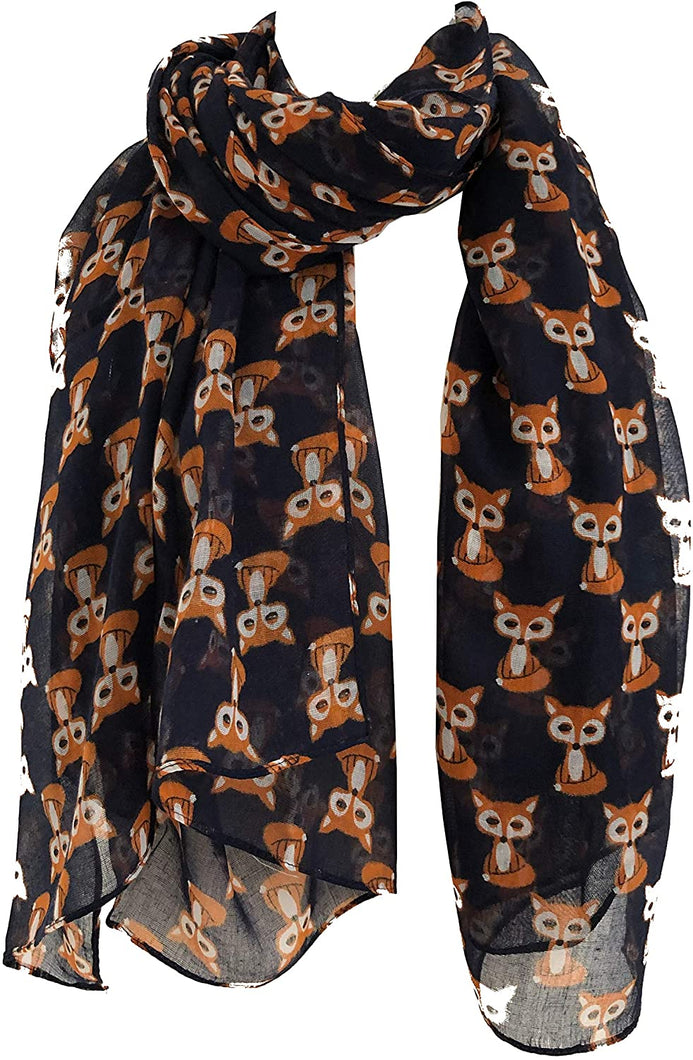 Pamper Yourself Now Blue Mini Fox Design Long Scarf, Soft Ladies Fashion London
