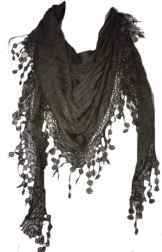 Pamper Yourself Now Bottle Green Jersey lace Trimmed Triangle Scarf Soft Summer Fashion London Fashion Fab Gift