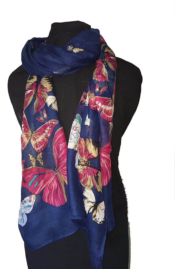 Pamper Yourself Now Navy Blue Scarf with Big and Small Butterflies