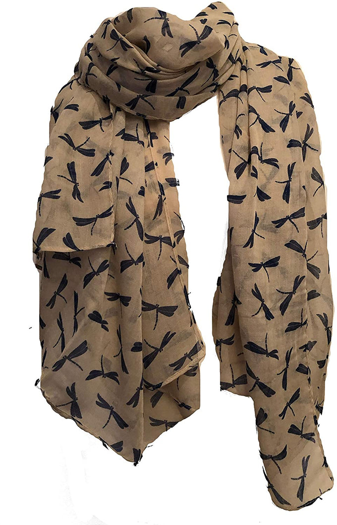 Pamper Yourself Now Ladies Scarf Beige with Blue Dragonfly Fashion Long Soft wrap/Sarong