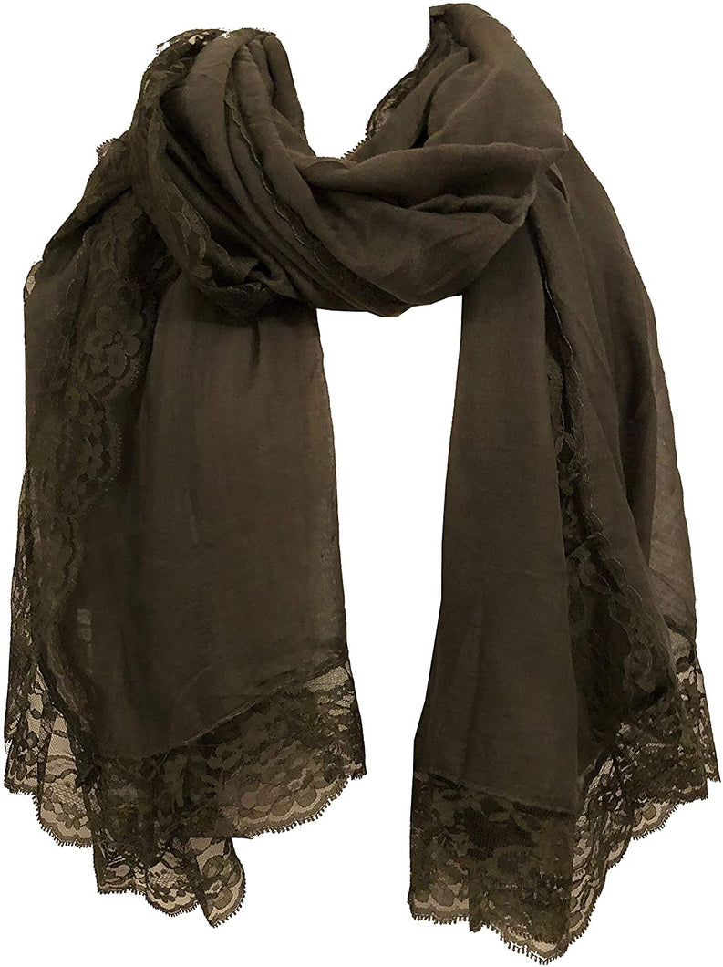Pamper Yourself Now Dark Green Plain Long Soft Scarf with lace Trim