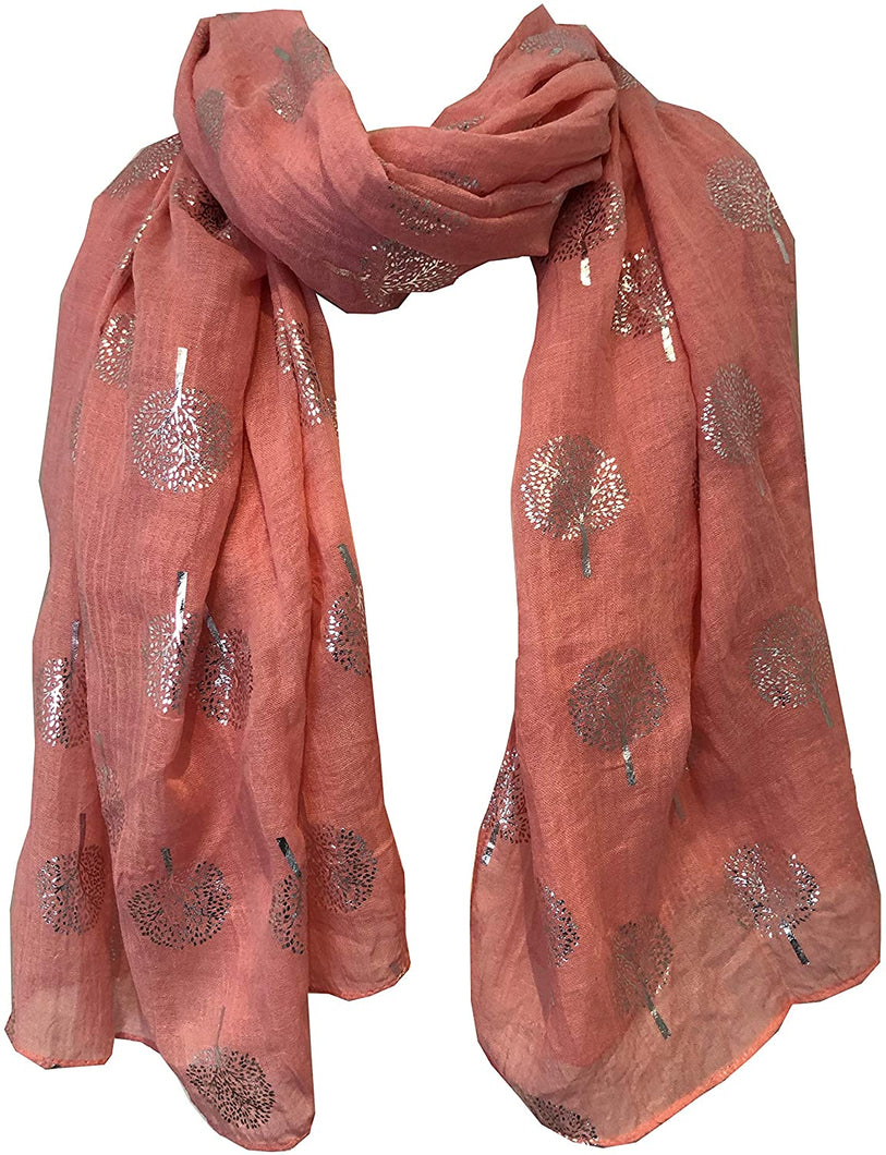 Pamper Yourself Now Peach with Silver Foiled Mulberry Tree Design Ladies Scarf/wrap. Great Present for Mum, Sister, Girlfriend or Wife.