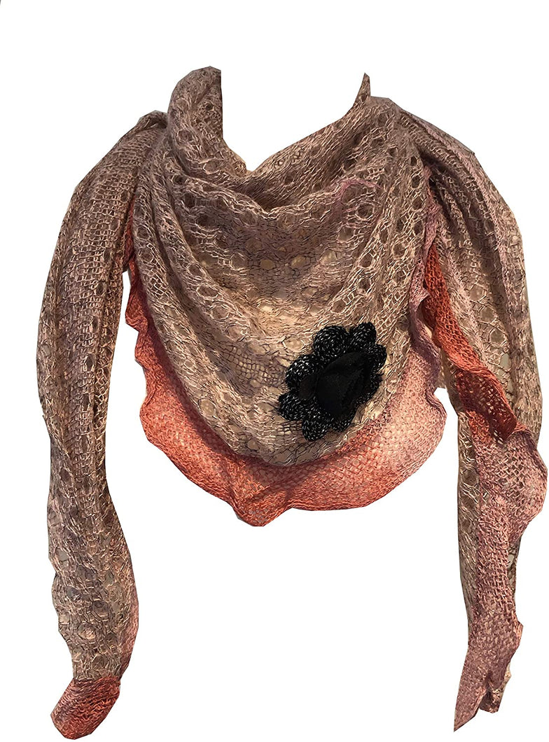 Pink with Brown Roses Chiffon Style Triangle Scarf with lace Trim. a Lovely Fashion Item. Fantastic Gift