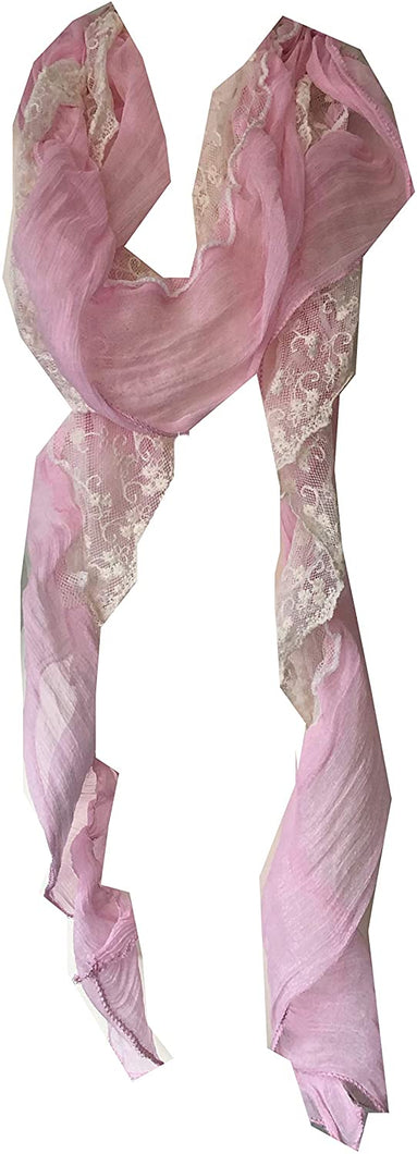 Pamper Yourself Now Light Pink Stretchy Thin Soft Long Scarf with lace trrim