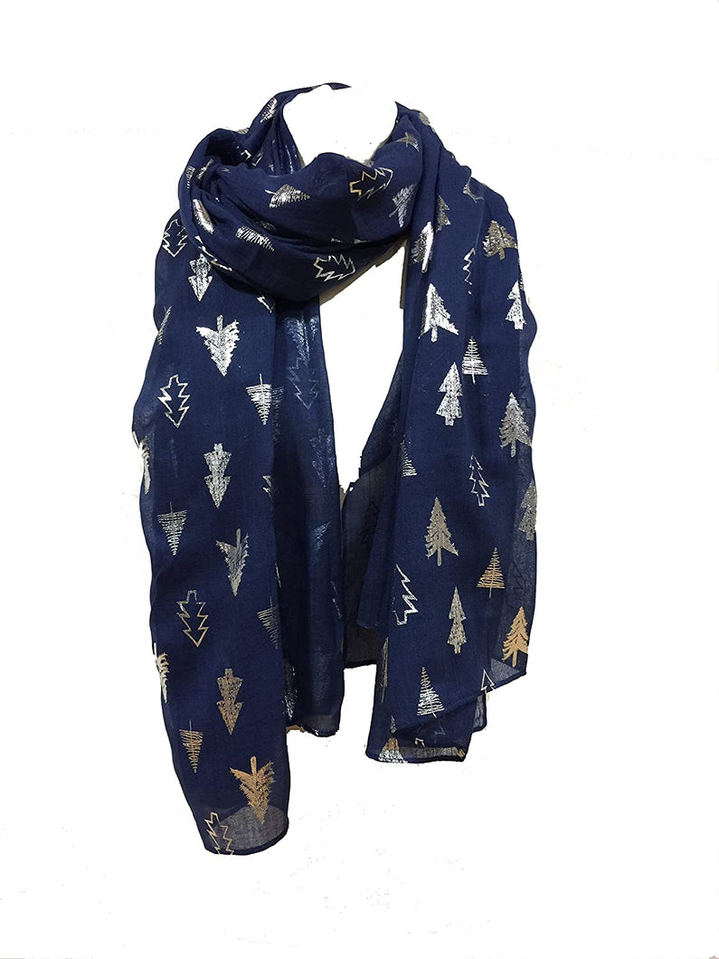 Pamper Yourself Now Navy with Silver Christmas Trees Ladies Long Soft Scarf