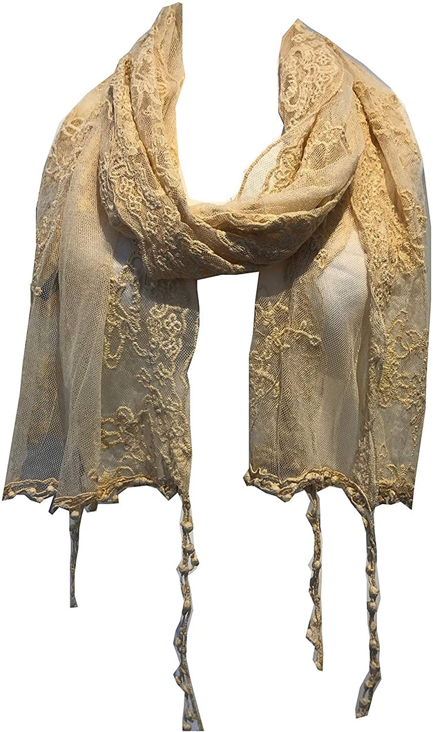 Pamper Yourself Now Mustard with Cream Flower lace Trim with Tassel Scarf