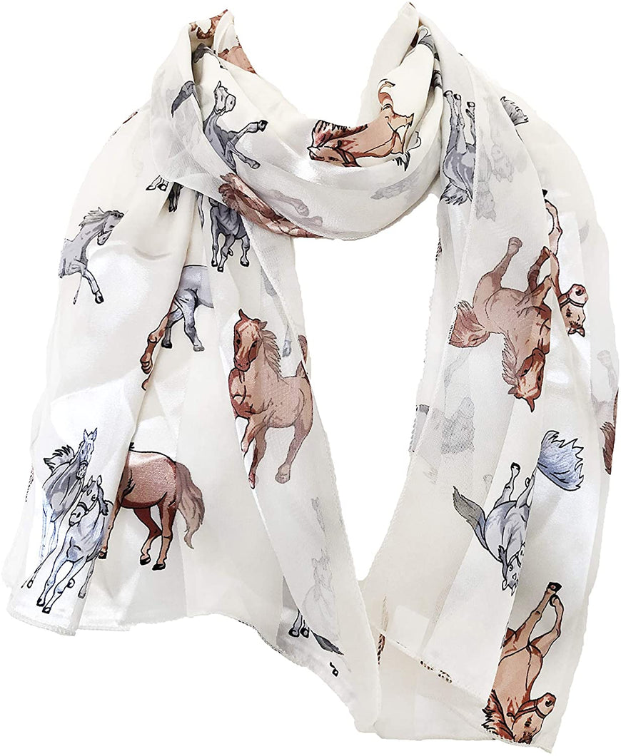 Pamper Yourself Now Cream Running Horse Shiny Thin Pretty Scarf