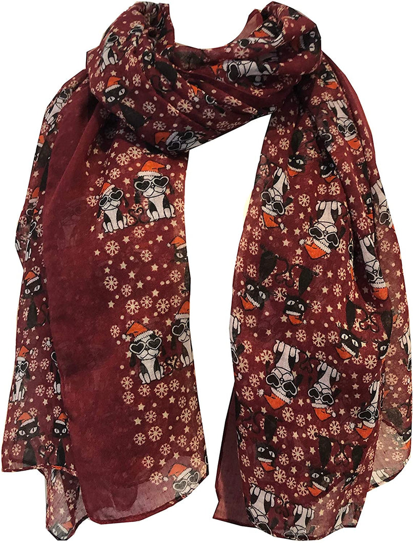Pamper Yourself Now Red with Christmas Dogs and cat Design Long Soft Scarf