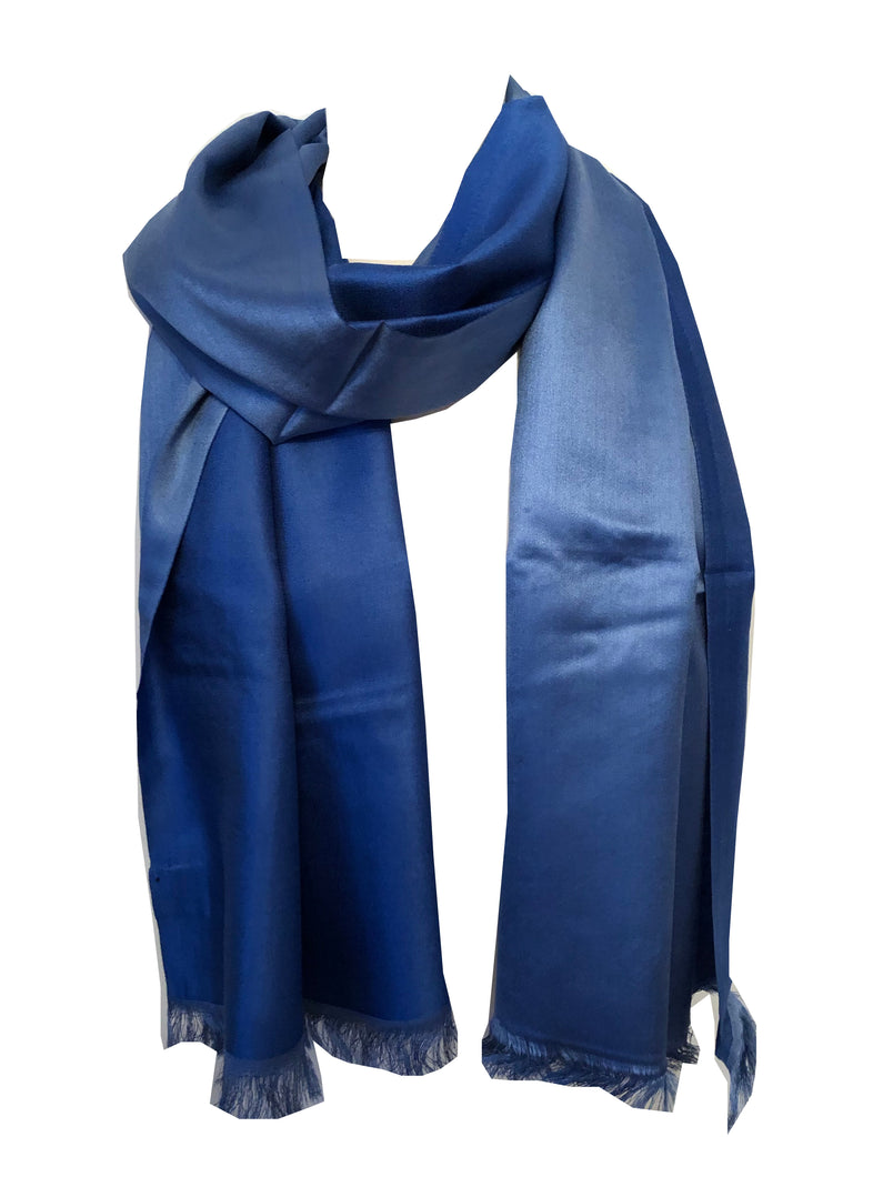 Pamper Yourself Now Blue and Light Blue Reversible 100% Silk Scarf/wrap with Slightly Frayed Edge Lovely Long Scarf