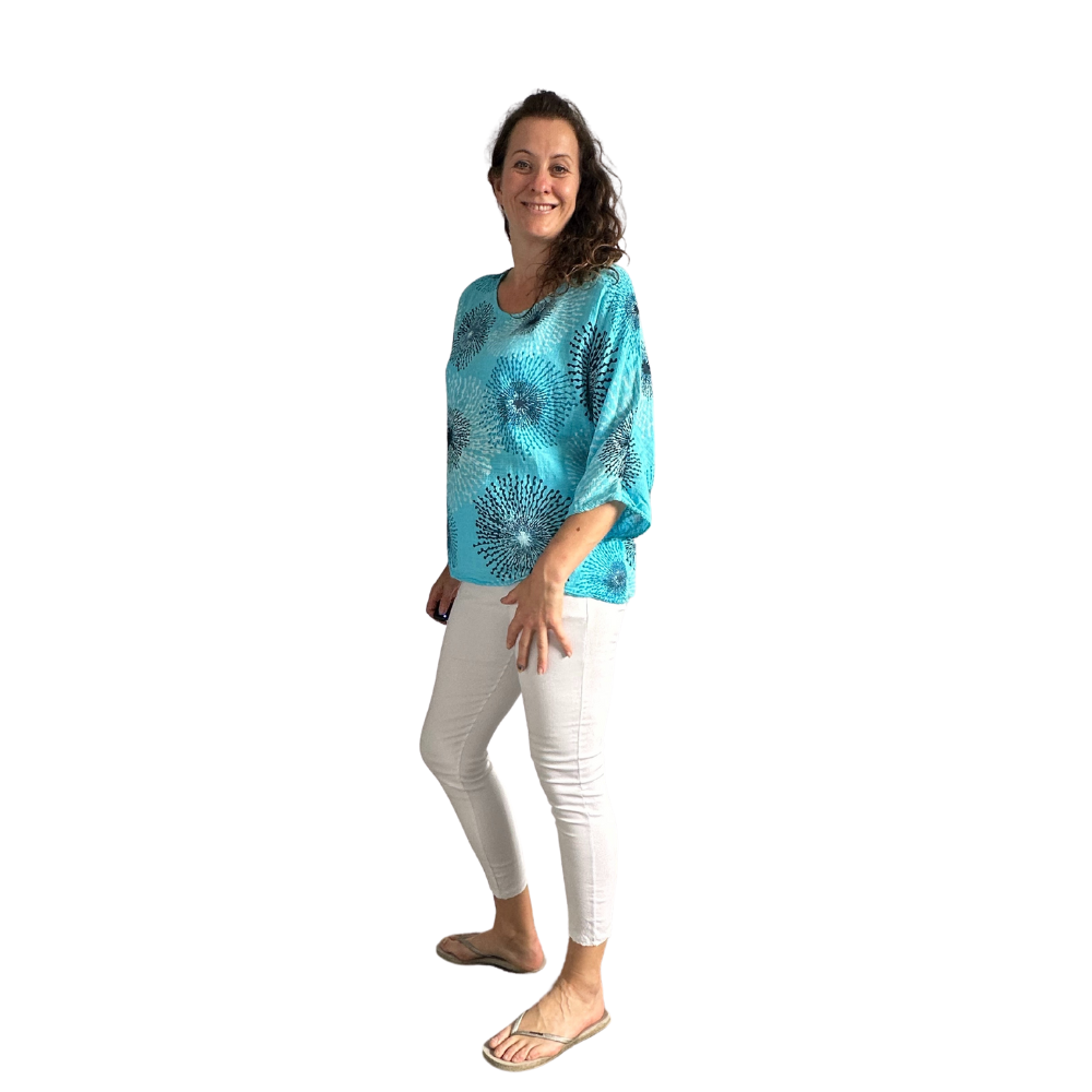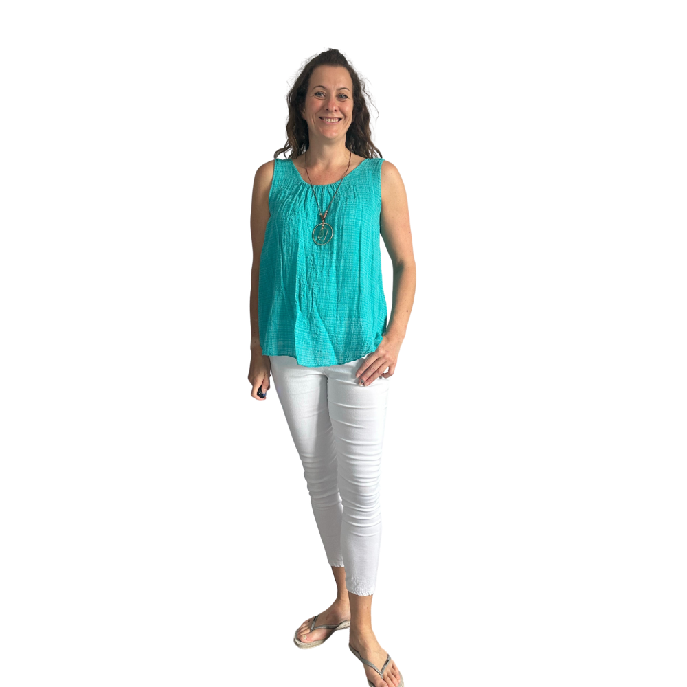 Turquoise Blue Sleeveless layered top for women. (A161)