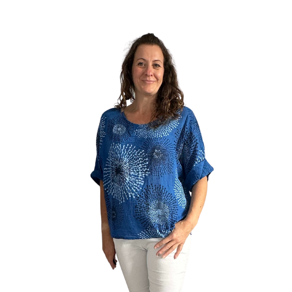 Royal blue Plain Crinkle cotton top for women. (A147)