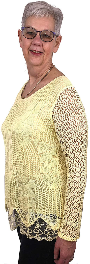 Pamper Yourself Now ltd Ladies Yellow Crochet lace Long Sleeve top.Made in Italy (AA2)