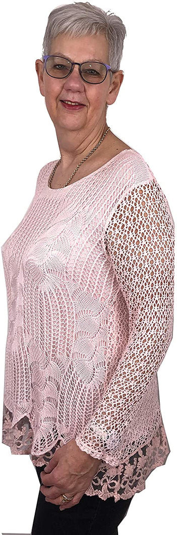 Pamper Yourself Now ltd Ladies Pink Crochet lace Long Sleeve top.Made in Italy (AA3)