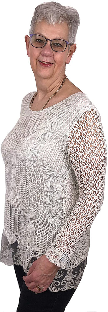 Pamper Yourself Now ltd Ladies Coral Crochet lace Long Sleeve top. Made in Italy (AA5)