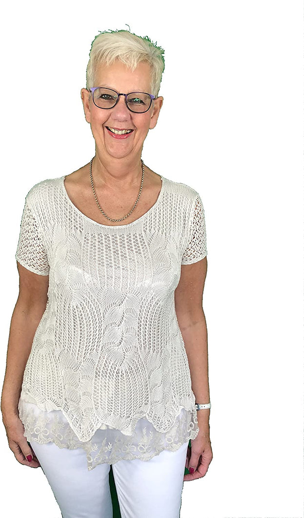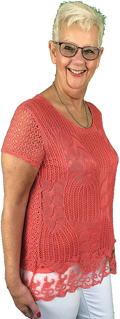 Pamper Yourself Now ltd Ladies Coral Crochet lace Short Sleeve top.Made in Italy (AA16) (Medium)