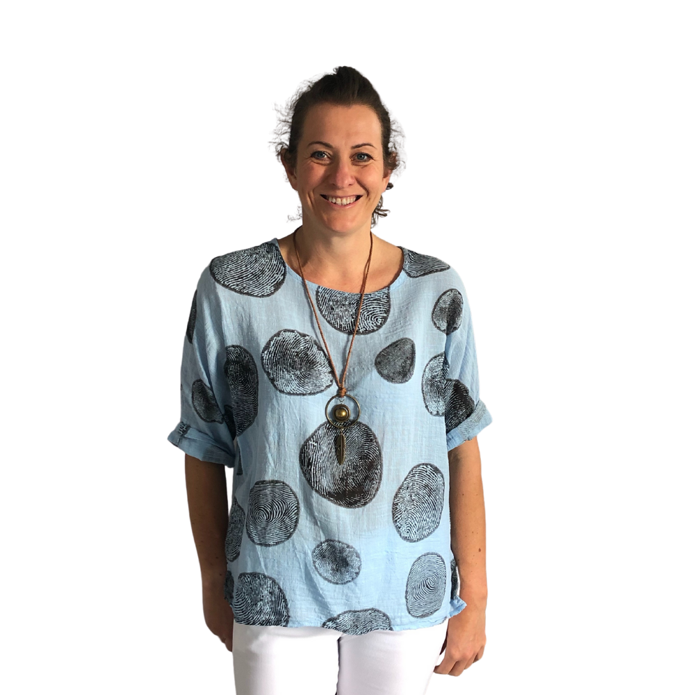 Sky blue with Black Bark Design 3/4 Sleeves Top with Necklace. (A121)
